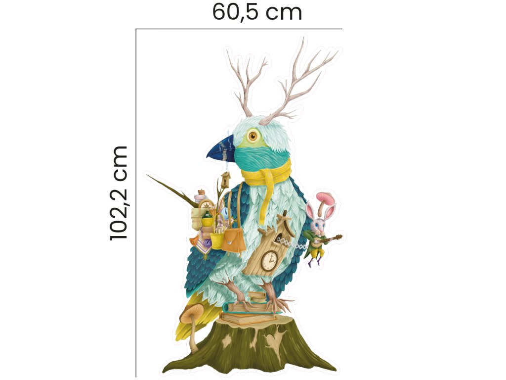 Jedna větší samolepka na stěnu velikosti 60,5 x 102 cm. Nálepka má bílý okraj.