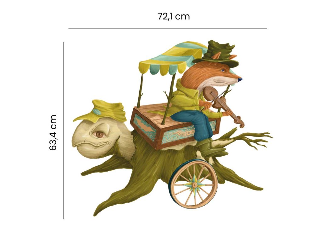 Jedna větší samolepka na stěnu velikosti 63,4 x 72,1cm. Nálepka má bílý okraj.